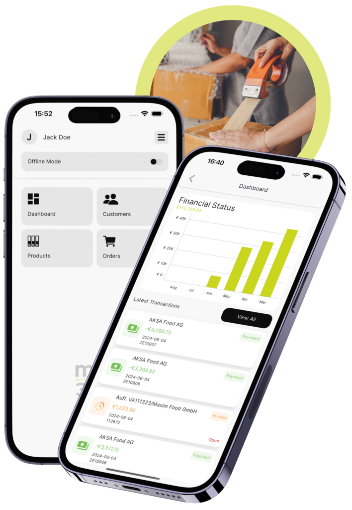 Mit Offline- und Online-Modi synchronisiert das System Daten schnell und macht Ihre Mitarbeiter einsatzbereit. Über die mobile App können sie problemlos auf Kundeninformationen, Verkaufshistorie, Preise und Produktbestände zugreifen und sofort Aufträge erstellen.